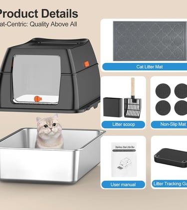 · 【Innovatively Designed Cat Litter Box Enclosure】Featuring an easy-to-assemble modular system, our stainless steel litter box offers both enclosed litter box and semi-enclosed configurations to suit various needs. The enclosed setup provides a private space for your cat, effectively keeping litter and odors contained, while the semi-enclosed option caters to cats preferring more open spaces and simplifies cleanup for owners